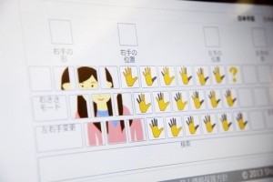 The screen of SLinto, keyboard and sign language dictionary, user can select forms of fingers and position. It can search sign languages by a form of hand and position.