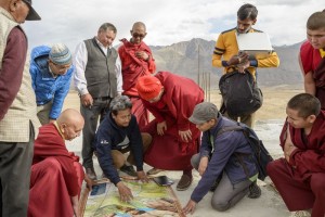 The Rolex Awards for Enterprise Wangchuck Sonam, 2016 Laureate Sonam Wangchuk shows building plans to monks and colleagues at the planned site for a university.