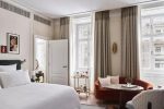 A warm, refined residential style imbues 71 guestrooms and 28 suites that extend over four of the hotel’s seven floors. A neutral color palette in guestrooms conveys warmth and gracious refinement, with a background for an abundance of details such as handcrafted brass wall light fixtures whose design takes inspiration from an edelweiss, the Austrian alpine flower. The light-filled spaces feature custom-made furnishings, including a mini-bar of walnut, leather, and locally sourced gray marble, and an opulent bathroom vanity that features made-to-order lighting from one of Vienna’s leading manufacturers. Distinctive fabrics by Backhausen, the distinguished company established in 1849 and renowned for its Wiener Jugendstil patterns, embellish finishings from curtains to chairs, tissue boxes, and bedside notepads. In collaboration with art and styling curation agency Atelier27, commissioned works by leading international artists include illustrations, archival photography with printed gold leaf, paper cuts, lithographs and wall sculptures.