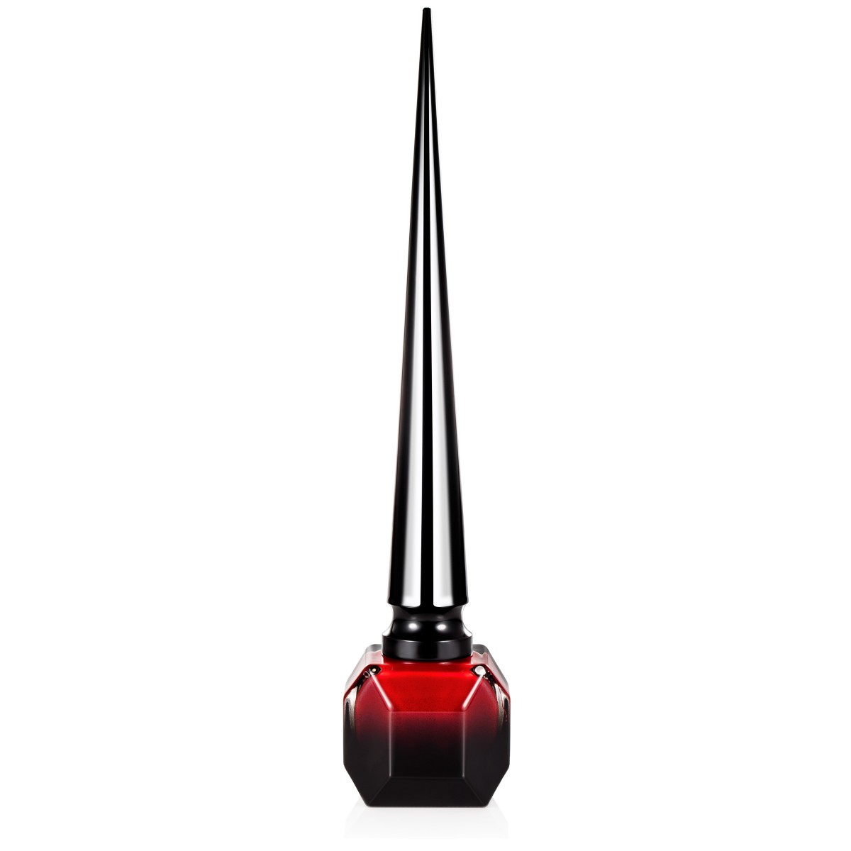 Priced at $50 in the US, the bottle features ombré-effect faceted glass and a pointed metallic cap that contains the special brush. Rouge Louboutin is enclosed in a patent leather like finish presentation box with a red reveal.
