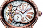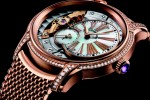 Two new Millenary models come in white gold and pink gold with mother-of pearl dials and diamond-set bezel and lugs. The models feature matching Polish woven gold bracelets.