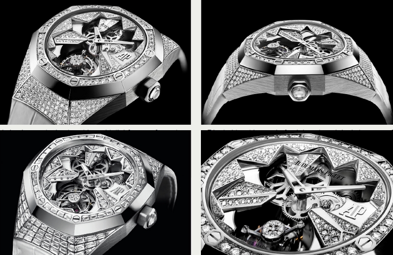 Audemars Piguet Royal Oak Double Balance Wheel Openworked is a new model responding to a growing fascination with a watch’s innermost secrets. Royal Oak Concept Flying Tourbillon is the first Audemars Piguet flying tourbillon and the first Royal Oak Concept watch for women. The intricate mechanics of the movement give new dynamism to exemplary gem setting.