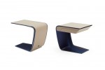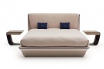 The bed, named after Ettore Bugatti’s daughter Lydia, translates the aesthetic codes and values of the living furniture into a contemporary solution. The wide and comfortable headboard has an embracing shape enhanced by a Blue Royale profile in contrast with the fabric or leather cover. It is enriched by a precious embroidery