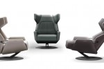 V163, the new Aston Martin armchair (Sizes: cm 73x83x98h), is characterized by a style that combines a strong personality with an excellent comfort. Fully upholstered in a soft Aniline leather, it is equipped with recliner mechanism that also allows the extension of the seat, which guarantees more relaxing positions. It has a glossy black metal base and it is available in different colors.