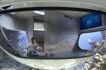 The interior of the flying saucer-shaped home consist of a transformable kitchen and dining/living area on a 20-sq. m (215-sq. ft.) top level, with stairs leading down to a 10-sq. m (107-sq. ft.) submerged lower level with bathroom and bedroom surrounded by a large window for viewing sea life.