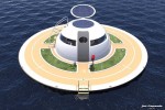 SeaJetCapsule‘s UFO powered by renewable energy is intended for “living floating house.” The UFO remains stable in rough weather.