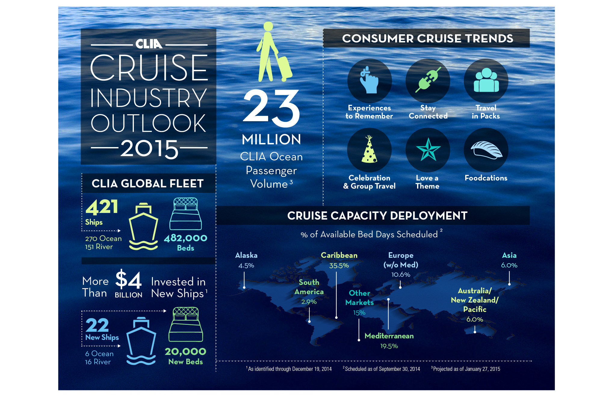 - Travelers Will Continue to Set Sail – Cruise travelers intend to continue to set sail and are highly satisfied with prior cruise experiences. In fact, 62 percent are return cruisers and 69 percent ranked cruising as a better value than a land-based vacation. Overall, CLIA member ocean passenger volume is projected to increase to 23 million in 2015, a four-percent increase over 2014 estimates of 22.1 million.