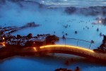 Designed to “bring you closer to nature and the wonders of geothermal seawater,” The Retreat at Blue Lagoon Iceland’s unique attractions include an underground spa, a mineral-rich lagoon, a restaurant that reinvents Iceland’s culinary heritage, and 62 elegant guest suites encircled by the waters of the Blue Lagoon Geothermal Spa, one of the most visited attractions in Iceland. The blue color comes from the silica and the way it reflects sunlight. Retreat Lagoon’s volcanic waterscape became the backdrop for relaxation within the unique balneotherapy spa. Grab a refreshment at the in-water bar and discover the in-water relaxing massages and treatments conducted with Blue Lagoon mineral massage oil.