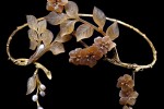 Jewellery design experienced great changes during the second half of the twentieth century. During the 1960s and 1970s avant- garde jewellers in Europe broke away from traditional gem-set jewellery to create abstract sculptural designs with unconventional settings for pearls. In contrast, the high-end jewellers sought a path between tradition and Modernism. From the 1980s, the emphasis for artist jewellers has been less about the value of the pearl and more about novelty of design. Searching for new ways of wearing pearls, they set them in a variety of metals, often with textured surfaces and successfully combined them with non-