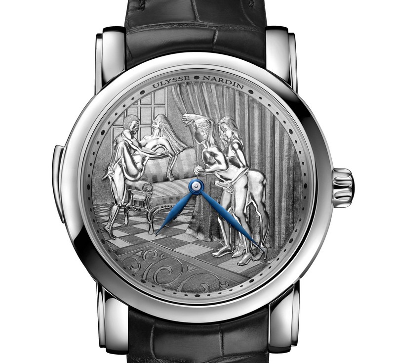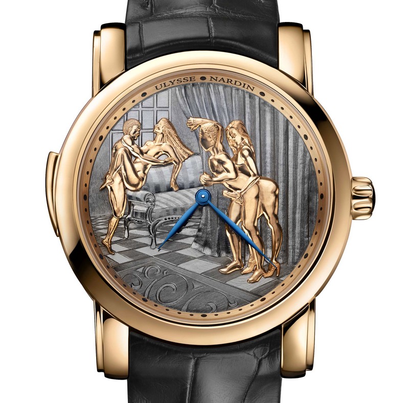The Classic Voyeur timepiece presented this year at SIHH 2018 is Ulysse Nardin’s most erotic creation ever, a “Jaquemart minute repeater that literally makes love to time.”