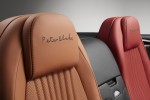 Throughout the exterior of the car, the use of collage – another characteristic of his work – demonstrates bright but clearly defined colour. A St Luke’s Blue – a bespoke colour introduced by Sir Peter, named in homage to Bentley’s local St Luke’s Cheshire Hospice – dominates the cars iconic rear haunches, doors and boot lid, with a British Racing Green lower body, and a Fuchsia pink-coloured radiator shell. The bright paint colours compliment the black exterior brightware and a black hood, incorporating a darker sub-tone while allowing the bright exterior colours to flourish.