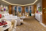 Designed by Alex Yemenidjian and Annie Gevorkian, the Sky Villa Suites were created with an emphasis on modern glamour. These Las Vegas luxury suites include custom furnishings with white lacquered panels and Honey Birdseye and Anigre Lacewood highlighted with gold leaf. To give the suite added beauty and warmth, custom Golden Spider Natural Marble and luxurious carpet is used throughout. Cove lighting creates a soothing ambiance throughout the room. To accentuate the space with bold colors, specially designed abstract artwork is exhibited in the rooms.
