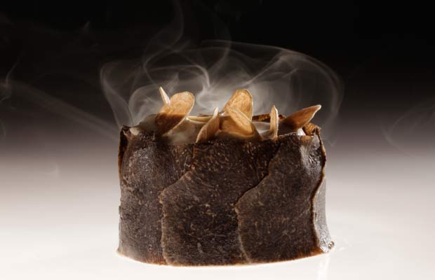 The charcoal-grilled king prawn with king-prawn sand, ink rocks, fried legs, head juice and king prawn essence brought to El Celler De Can Roca in Gerona, Spain, the title of “The world’s best restaurant of 2013” awarded by Restaurant Magazine.
