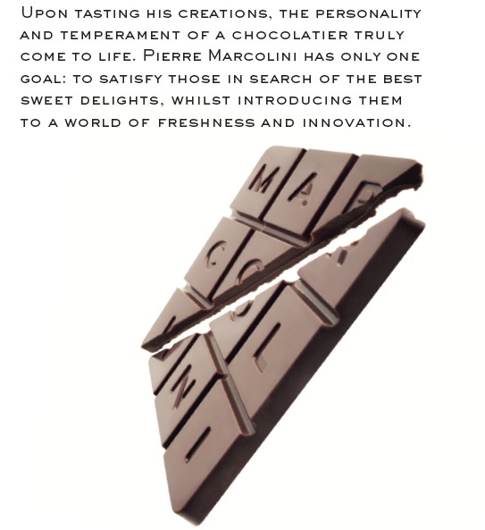 Pierre Marcolini is a chocolatier with a passion who always strives for the very best. In his world, simplicity rhymes with enjoyment,sharing,discovery, with a touch of refinement and creativity… And last but not least, with a childhood dream: to give this delicious treat – wrongfully considered a deadly sin – a new image.