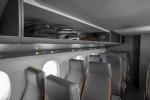 Combining form and function, the passenger configuration of the Cessna SkyCourier cabin offers seating for up to 19 with a generous, 32-inch (80 cm) seat pitch and separate entry doors for passengers and crew. Inside the aircraft, a netted rear cabin cargo area can accommodate luggage and equipment, and optional overhead baggage compartments provide additional storage space onboard. USB charging ports are located throughout the seating area, and large windows add natural light for greater comfort onboard.