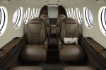 Featuring the King Ranch edition Matterhorn white base coat with dark caramel pearl and black pearl stripes, the livery is showcasing the King Ranch Running W logo adjacent to the entry door and on the inboard side of the winglets. Inside, the theme continues with King Ranch pewter trim accents below the four cabin tables, Running W aft bulkhead quilting, King Ranch-branded throw carpets, hair-on-hide lumbar pillows, ostrich muslin vinyl headliner and window panels, Tendu wood grain side-ledges and cabinetry, crocodile-embossed leather upper sidewalls and many more distinctive elements and accessories.