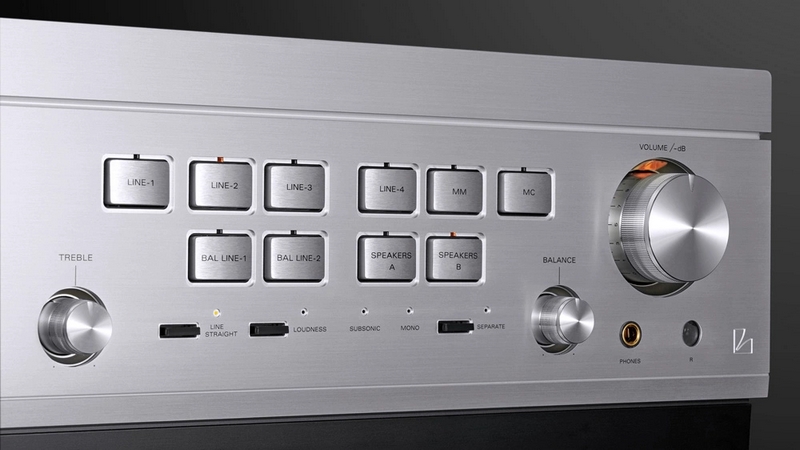 It is outstanding among modern audio components, while retaining simple operability and featuring beautiful exterior details, such as aluminum direct selection switchgear with indicators, the volume level indicator light and a bold counterbore around the calibrated volume knob.