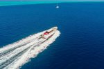 Accommodating extra crew or guests in the three cabins onboard the yacht, Stargazer tender transports guests from shore to mothership. The boat serves as a diving platform that goes into small lagoons and shallow areas where people can comfortably go in and out of the water using a large swim platform in the stern that forms steps underwater when deployed. The yacht tender is able to hold extra stores onboard.