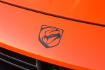 The exterior of the SRT Viper TA features exclusive Crusher Orange paint with black 2D TA logos behind both front
