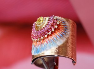 Piaget – An exceptional #SunnySideOfLife cuff decorated with feathers marquetry-