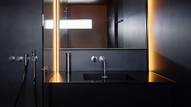 The boat will sleep 8 guests in the comfort of three cabins and one master suite, each given a distinct color scheme. All of them feature clever storage, retractable TV’s, Fosgate speakers and ample private bathrooms covered in sintered quartz and equipped with Vola accessories. The Owner’s cabin benefits from a dressing area, a desk, a drop-down TV and a generous master bathroom.