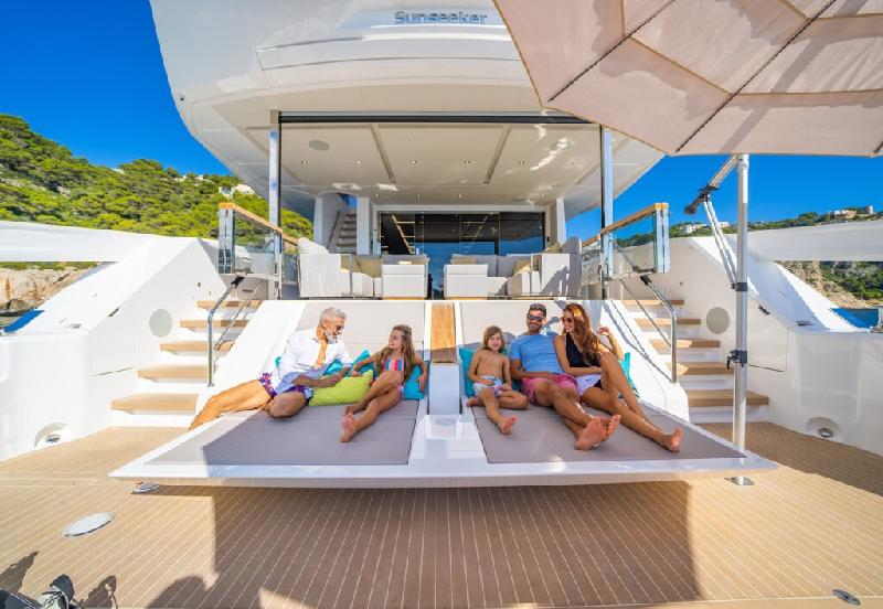 The exterior lines of this yacht are revolutionary, allowing the ‘Beach Club’ to become an even more impressive space. This spacious deck, measuring over 6m x 4m, is perfect for family and friends to socialise close to the water. The ‘Beach Club’ features the Sunseeker X-TEND sunbed, an industry-defining feature unique to Sunseeker yachts in the 80ft plus segment. Sunseeker considers the usability of features on board in meticulous detail, allowing an effortless user interface and a stunning aesthetic feature.
