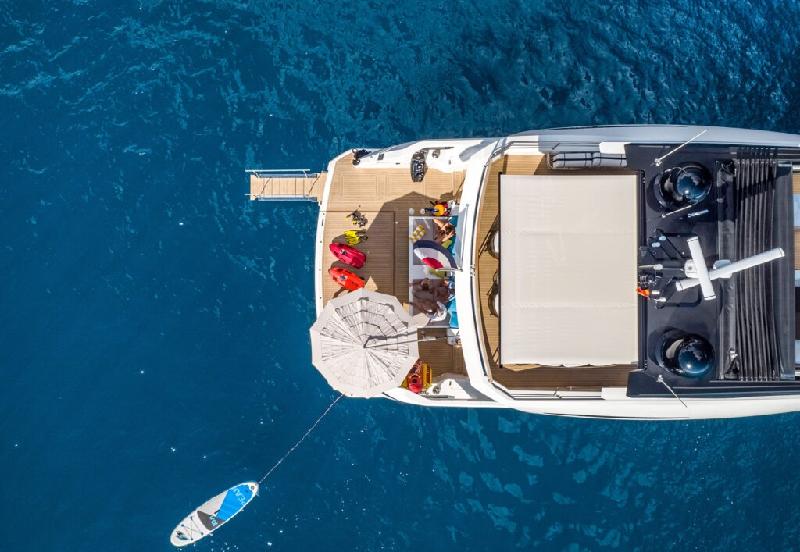 Hugo Andreae, Editor-in-Chief at Motor Boat & Yachting, wrote: “The Sunseeker 90 Ocean has it all: acres of versatile deck spaces packed with innovative solutions like the X-TEND seating; an intimate connection with the sea thanks to the vast sea-level beach club, glass transoms and bulwarks; masses of storage space for tenders, water toys and cruising gear; a wonderfully luxurious interior that makes full use of the unusually wide beam; and a hull that feels very nearly as agile and sea-kindly as some of its overtly sportier siblings.