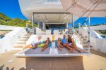 “The fact that this all fits comfortably into a craft with an LOA of 89ft is all the more remarkable, enabling it to offer the same space and luxury as much longer boats but without the associated running costs.