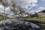 A descending path draws visitors to the Mirror Pool where the crystals’ light is captured like stars shimmering in the nocturnal sky – even in broad daylight. The innumerable fireflies create magic light; as if in an enchanted fairytale garden, they flit and dance through the air and accompany the visitors across the footbridge.