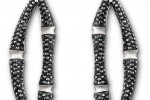 The exclusive rhodium-plated bangle features an intricate knot motif symbolizing love and the strong ties between two individuals. The collection includes aslo a long pair of rhodium-plated Black Bamboo pierced earrings, to be worn for daytime or evening wear.
