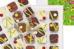 New flowers, butterflies and ladybirds are celebrated with naive and colorful designs on this whole new spring gourmet chocolate collection.