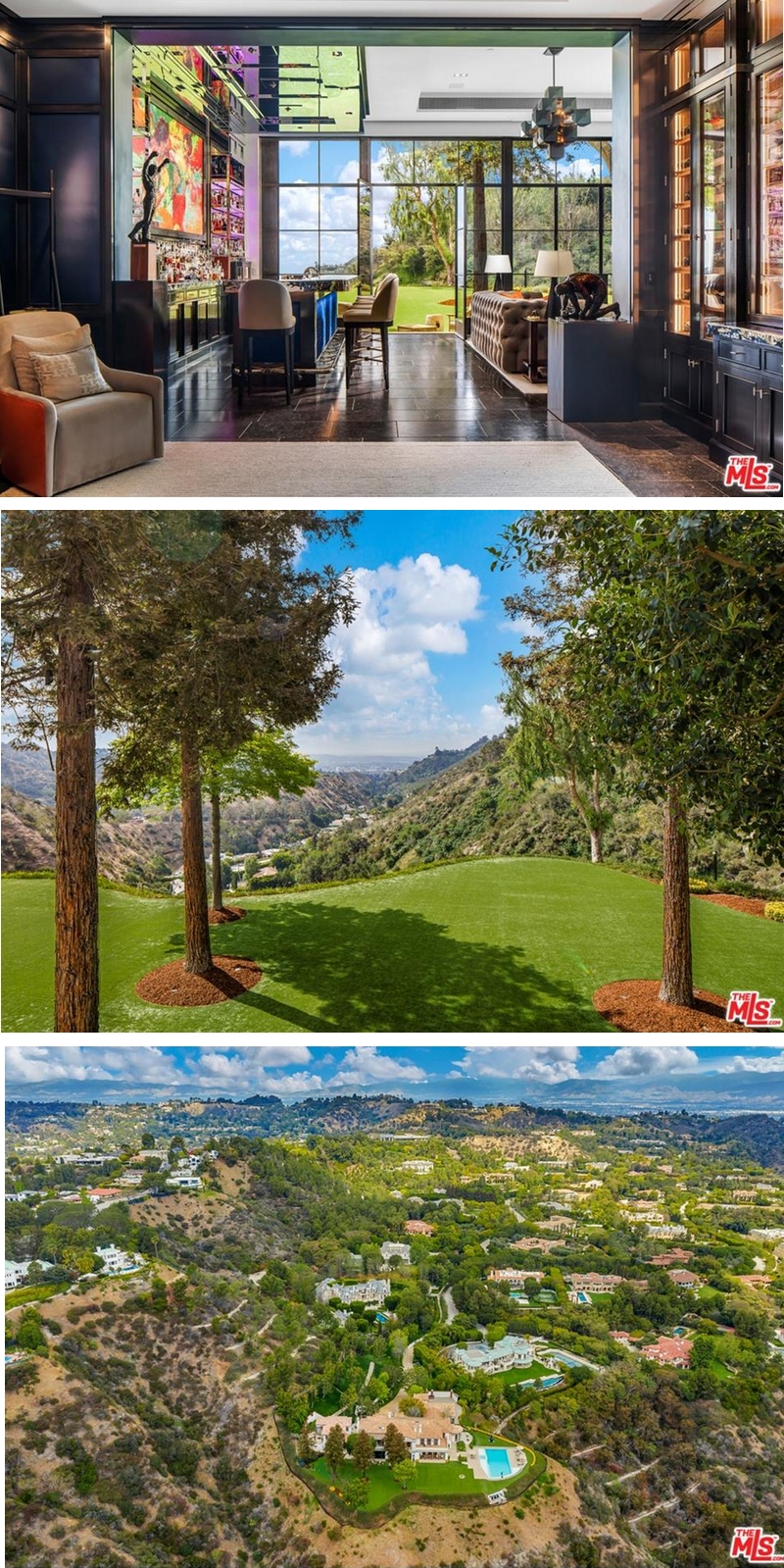 “Poised on a sprawling nearly 3.5-acre site in the exclusive guard-gated enclave of North Beverly Park, this estate is a world unto itself. From the moment you enter the large motorcourt, you’re transported to the Italian Riviera,” said Jade Mills. “The property’s walls of French doors and windows allow the light-filled environment to integrate with the beautiful, lush exterior while highlighting the expansive panoramic city and canyon views from every room, providing an exceptional lifestyle with ideal space for both luxurious living and lavish entertaining.”