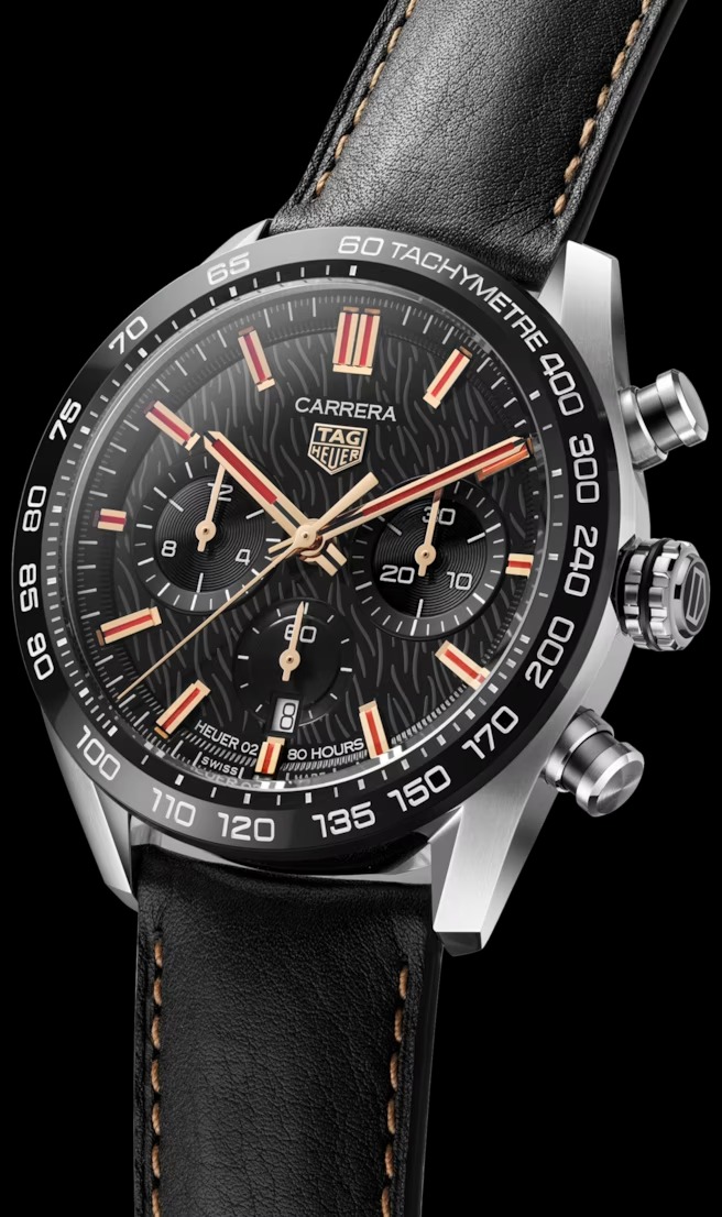 Luck, joy, passion, boldness: the new TAG Heuer Carrera Chronograph Year of the Rabbit timepiece commemorates the incoming 2023 Lunar New Year with a special limited edition of its heritage timepiece. Based on the 44mm Chronograph, this latest Carrera uses of the color red, 18K 5N rose gold detailing, and other symbolic features to evoke prosperity and fortune for the wearer. Contrasting with the bold black dial showing a rabbit stripe motif, the red-accented rose gold hands and hour markers match the colour of the rabbit rendered on the custom case back.