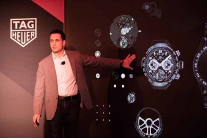 Tom Foldesi, TAG Heuer vice president of connected products and technology, joined Intel executives on stage at the St. Francis Yacht Club on Monday, March 13, 2017, to answer journalists’ questions about the new TAG Heuer Connected Modular 45. (Credit: Intel Corporation)