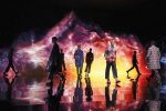 Scharf’s bright-hued mélanges appear in the dyed hair of models as well as the scenography by French director Thomas Vanz, who avows a fascination with astrophysics.