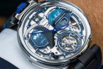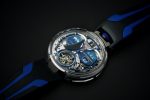 The fine detailing in Iconica Blu is combined with traditional finishing such as Côtes de Genève, angling, and polishing. Super-LumiNova has been generously applied to all the hands, including on the top of the tourbillon cage as well as the hand of the power reserve.