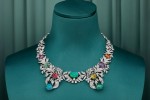 “Within these lines we find foliate motifs necklaces and chandelier earrings which refer to the current trend for grandiose Rococo and Baroque inspired jewellery. Contrasting colours of cabochon gemstones and chain link diamond pavé necklaces with animal motifs also keep the collection fashionable and of the moment,” wrote jewelry expert katerinaperez.com.