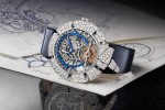 Poetic and playing with the refinement of the colored stones and watchmaking complications, the new Divas’ Dream with Jumping hours and Retrograde minutes, brings a fresh look at the feminine time reading.