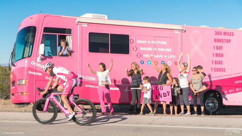 2LUXURY2′ motto “To be inspired is good! To inspire is great!” is reinforced this October with the most unique and epic breast cancer charity fundraiser ever. Taking part in Andy Funk’s 365-mile LA to Vegas fundraiser in support of the Pink Lotus Foundation, we see that individually we are one drop, but together we have the force of an ocean. When multiplied, our acts of charity have the power to transform communities. Vegas In 24 is a never-before-attempted 365-mile one-day bicycle tour de force made by Charity Ambassador and Ironman triathlete Andy Funk. He was pedaling 365 miles nonstop, alone, unsupported and unassisted from Los Angeles to Las Vegas. The superman of our days glided through the desert, pushing all the possible limits to support and raise funds for low income, uninsured and under-served women in need of breast cancer screening, diagnosis, and treatment. Like the cancer battle, this epic journey is about the human spirit. It is stronger than anything that can happen to it. Once you choose hope, anything is possible. You are allowed to scream, you’re allowed to cry, but do not give up.