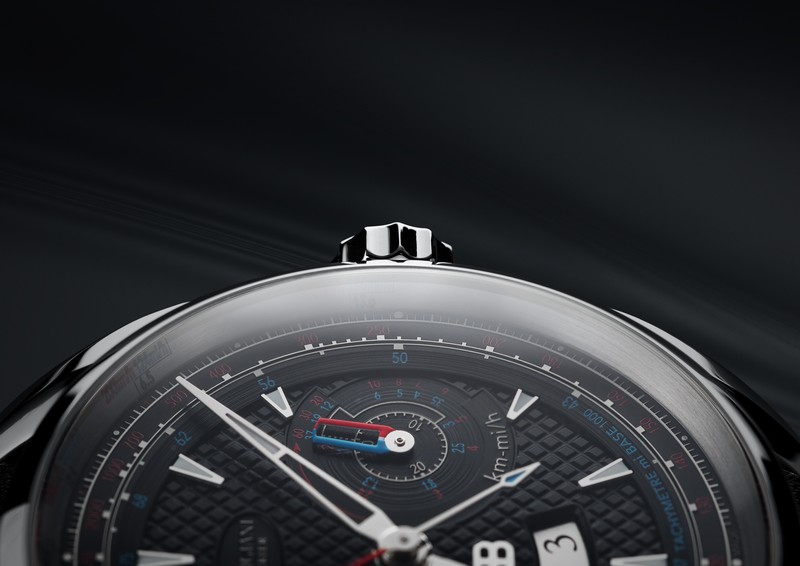 The stylistic hallmarks of Parmigiani Fleurier include the Delta-shaped hour and minute hands with luminescent coating , the RED “1” numeral on the date and the double hand second at 9 o’clock. An observer will immediately recognize the volumes, the aerodynamic curves and the color palette, so evocative of the Bugatti’s repertoire.