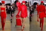 Patou laced-up thigh-boots designed in collaboration with Maison Ernest set off a wardrobe for women on the go in monochrome colorways of red, black, lavender, pink or burgundy.