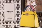 The Peekaboo bag, a Fendi icon, is presented at the Exhibition Windows pop-up. Have yours made to order with mix- and-match features, from glittery handles to patent straps, while exclusive Defender covers can be polished off with your initials.