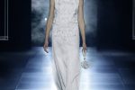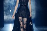 The silhouettes flowed in an evanescent choreography of embroidery, feathers, braids, pearls and crystals. In a white and black vision highlighted by flashes of gold and silver, the dreamlike lightness of draped bodysuits and evening gowns alternated with architectural capes and coats, as well as tights transformed into jewels.