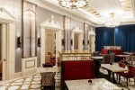 The Michelin star awarded Chinese restaurant, Imperial Treasure, offers a luxurious dining experience that starts with a dramatic entry point. HBA designers created a moon gate tunnel entrance with historic design elements to align with the restaurant’s Cantonese offerings. A wall of zodiac and high ceilings shape the space along with a contemporized palate of rich red, blue and yellow tones reminiscent of colors found in a Chinese temple.
