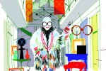 iris_apfel_and_dries_van_noten_bon_marche_rive_gauche iris in paris mug le bon marche 2016 iris in paris le bon marche 2016 exhibition iris in paris le bon marche 2016 capsule collection iris in paris le bon marche 2016  exhibition iris in paris le bon marche 2016  exhibition - Sautoir en céramique en collaboration avec Marion Vidal. iris in paris le bon marche 2016  exhibition - - iris apfel capsule collection for bon marche rive gauche 2016 Eric Giriat, illustrateur des vitrines du Magasin, pose près de l’une des silhouettes d’Iris Apfel