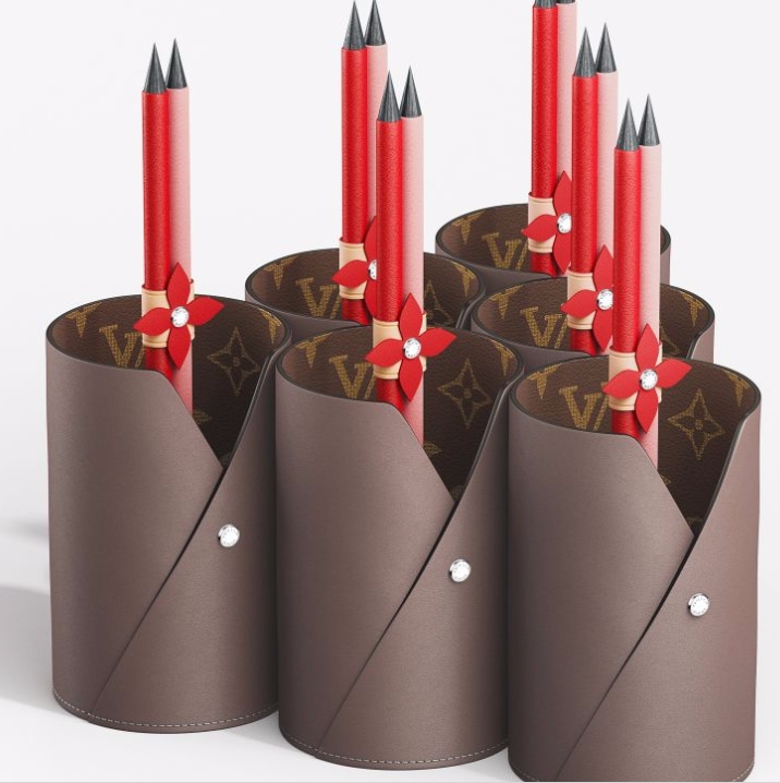 Inspired by Louis Vuitton‘s writing heritage, these luxurious yet affordable leather-coated pencils offer a selection of refined details. Featuring two striking colors and a Monogram Flower clasp, they make a fun gift.
