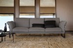 Resulting of a skilful interpretation of shapes and geometries, Fendi Casa Pagoda sofa features a comfortable and embracing seat accompanied by an elegant arm enhanced by the iconic Fendi Selleria stitching.