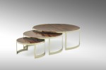A perfect synthesis of essential lines and structural weight, Fendi Anya is a set of coffee tables with an elegant rounded shape proposed in three different heights. The coffee tables by Fendi Casa are enhanced by a unique combination of materials: Rosewood top and polished brass finish steel frame.