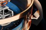 At the center of the satellite axis, a lacquered hand-engraved titanium globe rotates on itself inside a tinted half-domed sapphire, symbolizing night and day. - Satellites Race