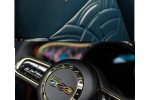 The most symbolic elements of the exterior are the components made of recycled polycarbonate from end-of-life parabolic projectors, used in the front grille, wheels and mirror caps. These objects feature a unique design inspired by the pattern of Kartell’s Kabuki lamp, created and developed as a motif to lead the new car’s identity, with unique details that recall the texture of the lamp and become special elements of the car. The Kabuki pattern can be found throughout the interior, with a polycarbonate cover on the dashboard insert and on the seats.